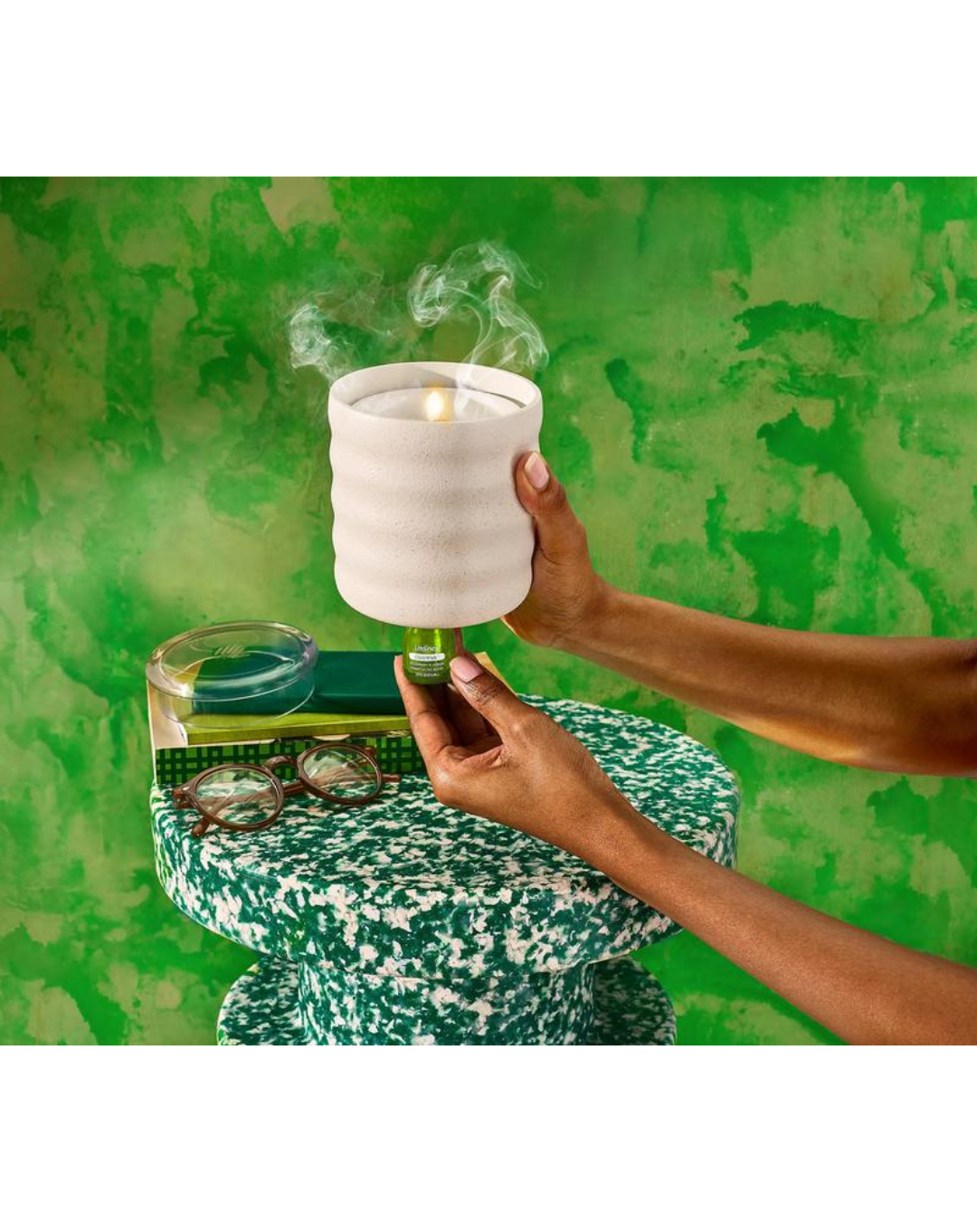 Just click in the ClickWick™ blend, turn it on, and let the aroma diffuse. Waterless, cordless, and rechargeable — and when you’re done, blow it out or snuff it with the lid just like a real candle.